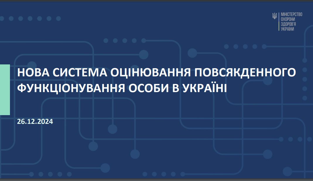 Переглянути можна за посиланням: НОВА СИСТЕМА ОЦІНЮВАННЯ ПОВСЯКДЕННОГО ФУНКЦІОНУВАННЯ ОСОБИ В УКРАЇНІ Автор Адміністрація27.02.2025Новини